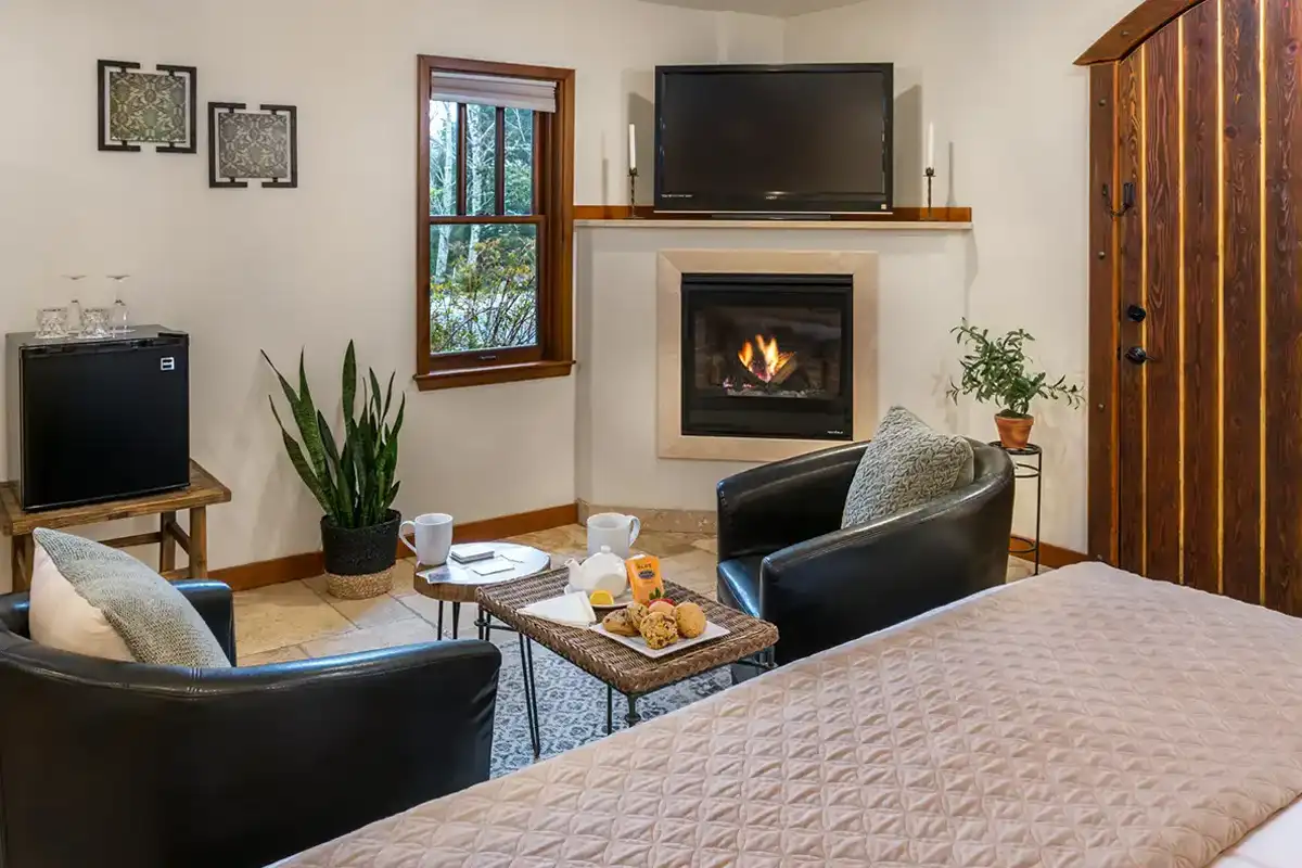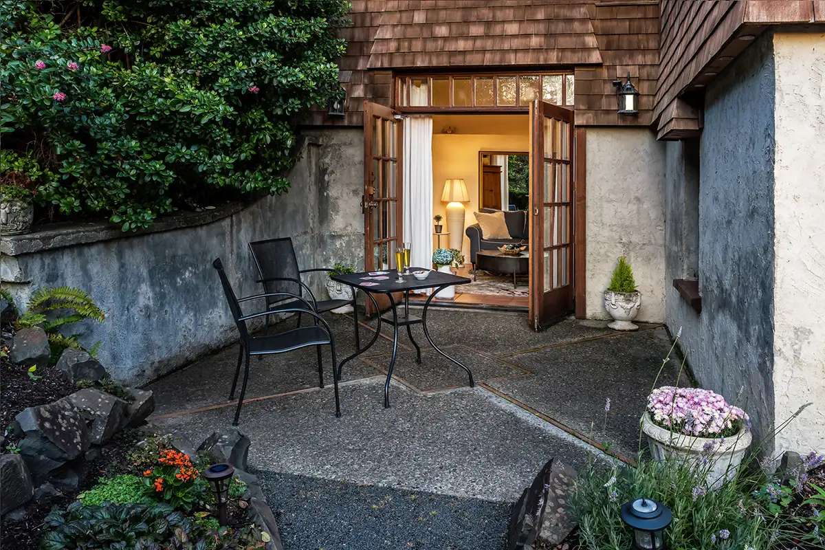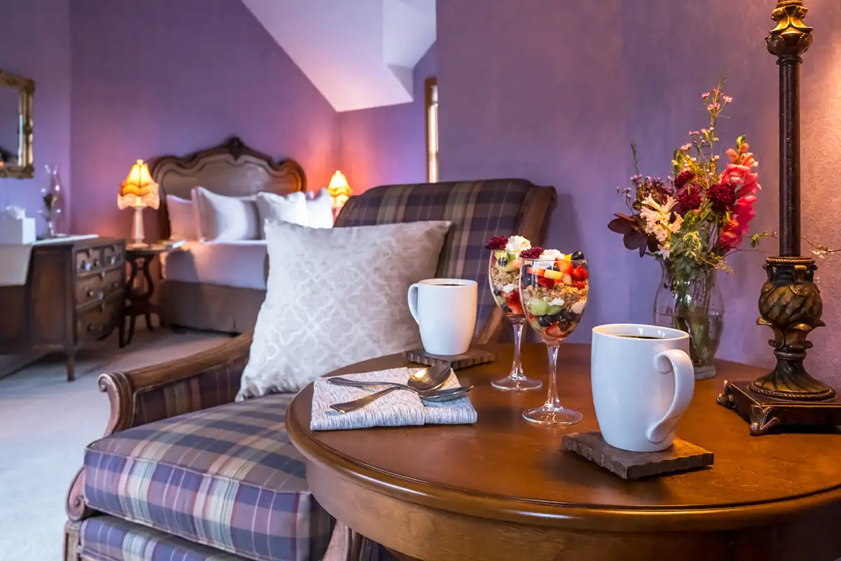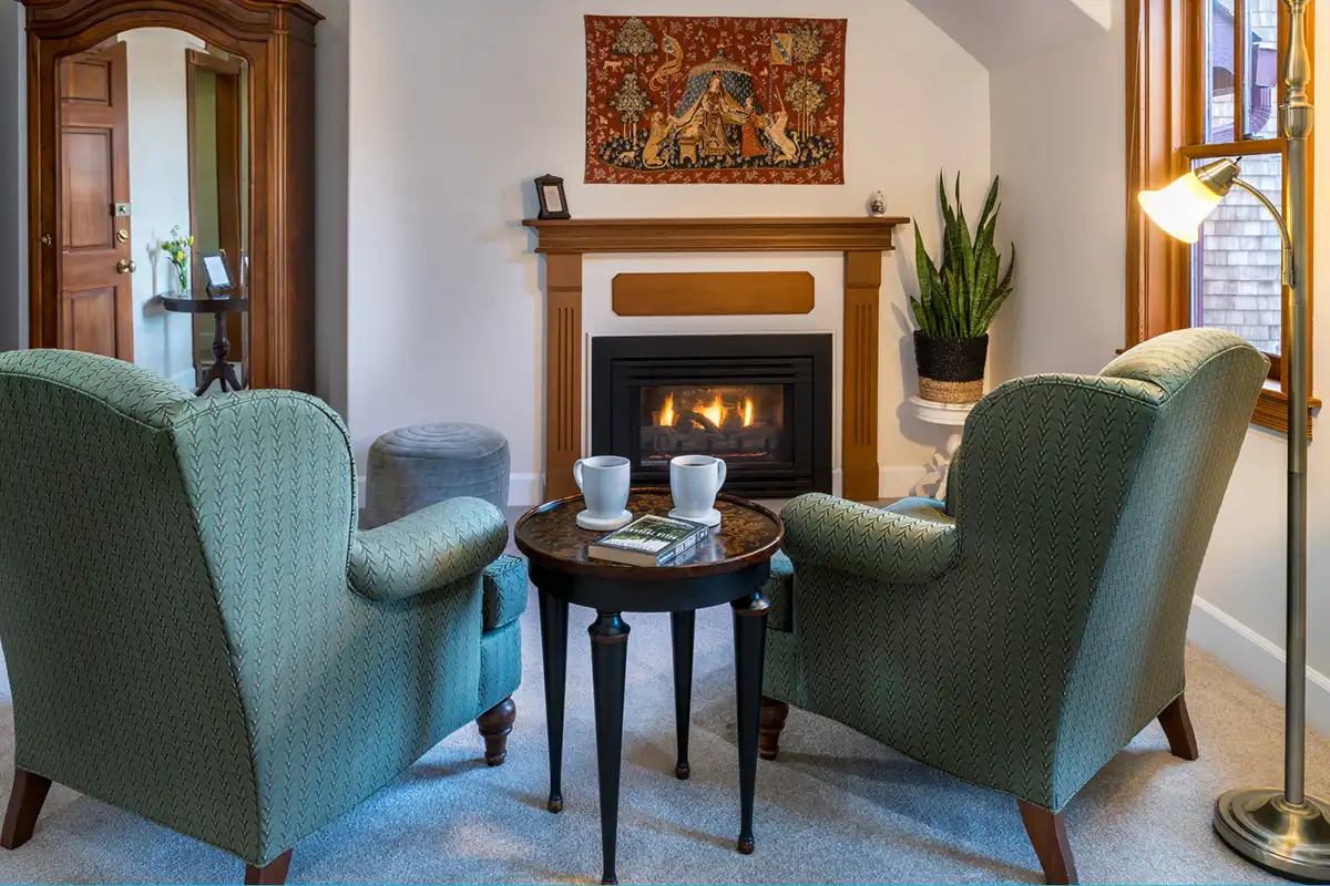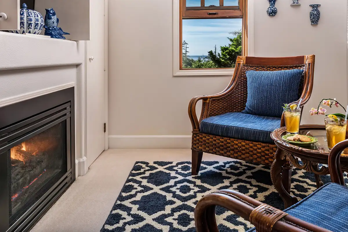 Each of our guestrooms has its own atmosphere and offers different experiences depending on what you are looking for. Our Tapestry room, for example, is a refined and elegant top-floor suite, displaying unique antique French decor and featuring cozy amenities such as a fireplace and a deep soaking tub. Fall asleep to the sound of the waves crashing afar and wake up to a delicious cooked-to-order breakfast downstairs! Check availability today!