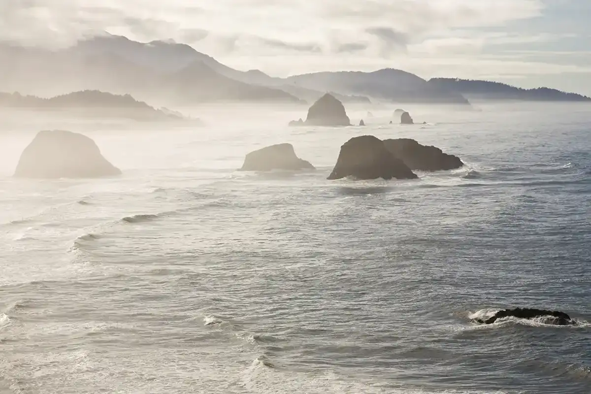 Embark on an unforgettable vacation just south of Cannon Beach, Oregon, where the stunning coastline of Arch Cape awaits you. This hidden gem offers a scenic and secluded stretch of beach, just a short four-minute walk from your doorstep. Step off the beaten path and experience the magic of a morning stroll, as the sun rises and delicate fog dances above the dark rock formations in the distance.